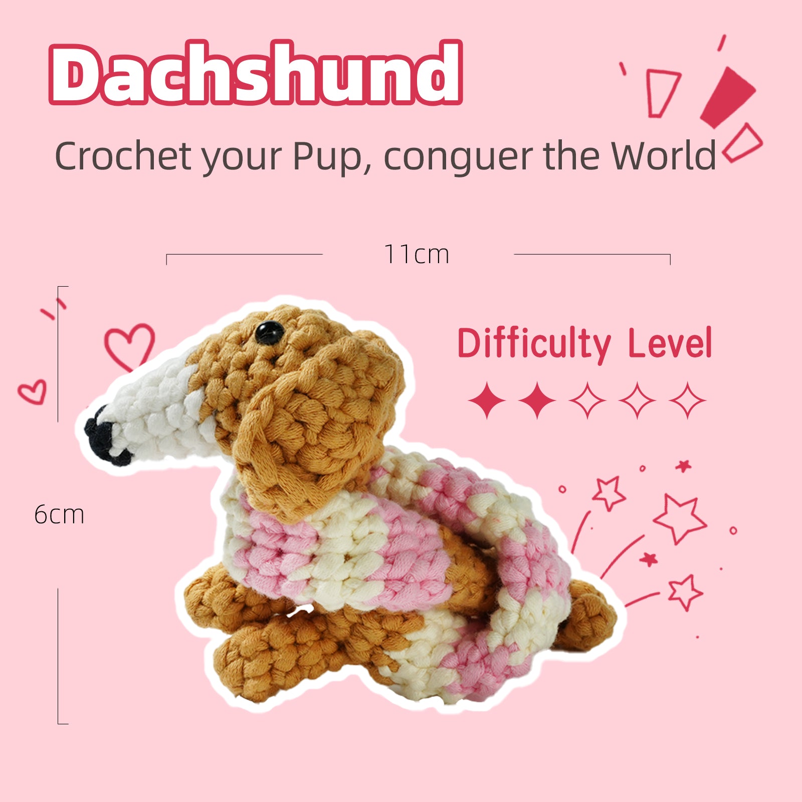 Complete Accessories: Safety eyes, stuffing cotton, positioning pins, and more to bring your dachshund to life.