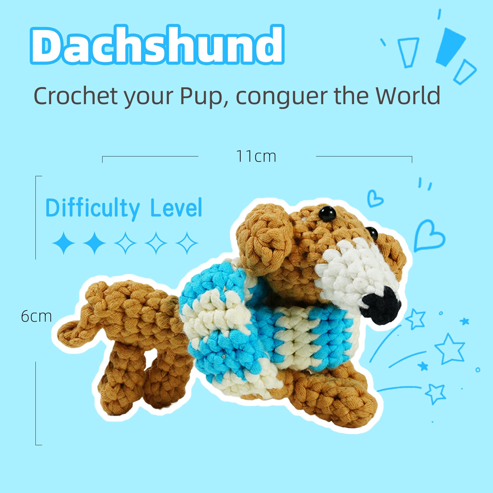 Complete Accessories: Safety eyes, stuffing cotton, positioning pins, and more to bring your dachshund to life.