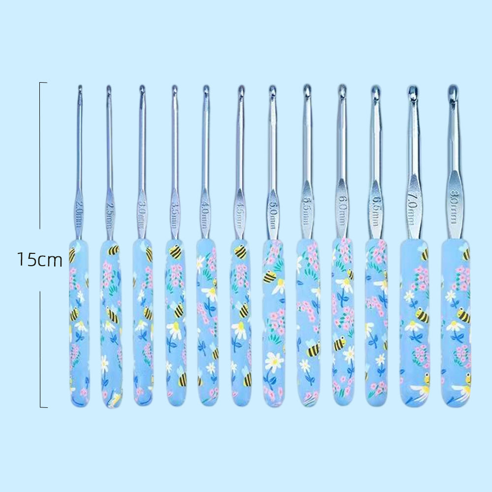 Introducing 12-Piece Crochet Hook Set, featuring essential sizes—2mm, 2.5mm,3mm,3.5mm,4mm,4.5mm,5mm,5.5mm,6mm,6.5mm,7mm,8mm—each equipped with a high-quality TPR handle with creative floral pattern. Designed for superior comfort and grip, these hooks are meticulously crafted to deliver precise and durable performance. Ideal for a wide range of crochet projects, from delicate designs to more complex creations, this set caters to both novice and seasoned artisans, providing the flexibility and reliability needed to bring creative visions to life.